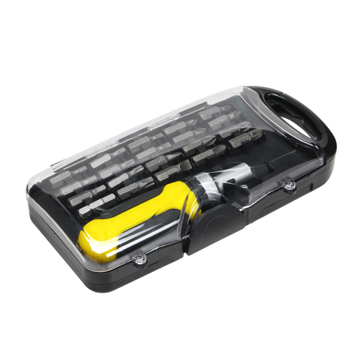 Minimum 50 pieces 20-piece set includes 4 Flathead, 8 Philips, 4 Hex and 4 Allen bits Anti-slip ratchet handle Includes plastic storage case Dime...